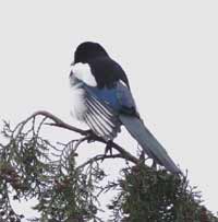 It is possible that this Magpie has something to do with it, although I don't rule out one of the local cats, once again. The Magpie has been 'working' its way through the conifers over the last two days, and this shot was taken after I disturbed it.