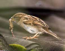 As if to reinforce that thought, while I saw out in the garden A rustling in the shrubs next door was followed by this sparrow heading for my neighbour's shed roof. While I watched, it beheaded a very plump caterpillar before carrying it up to one of our nestboxes.