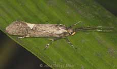 While we were having lunch on the veranda we were joined briefly by this little Weevil, pictured here on a banana skin. It could be a Pea Weevil (Sitona lineatus) although its elytra doesn't seem striped enough.