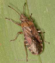 The second visitor was this bug, measuring about 1cm in length. I cannot come up with an ID but its four-segment antennae, and the abdomen being extended sideways beyond the wings suggests that it belongs to the family Coreidae.