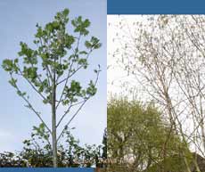 While it is very green around the base of the tree, the branches still look relatively bare. In the right hand image our Birch seems to tower over the well covered tree of our neighbour, although it is really smaller and much younger. The left hand image shows how much the Rowan has progressed since the buds burst at the beginning of the month