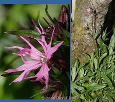 Instead of the aggression of the previous night the two seemed happy in each others company - perhaps the second hedgehog was a female rather than a potential rival? There was sniffing rather than snorting, and certainly no pushing around! This morning it is overcast but dry so far (8.45am). For the first time this year I've just seen a House Sparrow fledgling being fed. One of the plant species I'd thought I had lost has come into flower today - the Ragged Robins. Originally they were planted along the south side of the pond, but there is no sign of them appearing there this year. However, a group of plants had grown up clutching to the base of the tree stump that sits in the middle of the big pond. There isn't a record for last year but in 2003 the first flower appeared on 11 May.