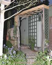The final picture shows the 'new' bit of the garden. The path in the picture leads past the metal shed on the right and to the Blue Tit nest box (which remains empty). The has been a low trellis to the left of the path for some time. A few weeks ago I decided to add the trellis on the right (and another one beyond the shed door. One thing led to another, and now we have an arbour! There is a honeysuckle plant on the left hand side and two different Jasmines on the right.
