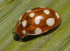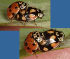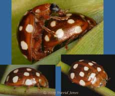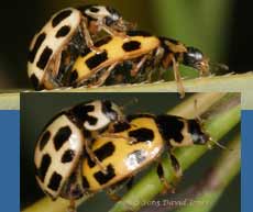 The other mating pair were these 14-spot Ladybirds. Much less variation in spots this time, although the male is much paler than his partner.