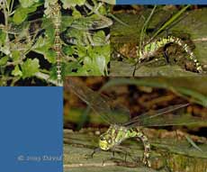 I took that last picture at around 6pm, and as I did so I was distracted by the whirring sound of a dragonfly's wings. I looked down to see it hovering right next to me. I tried to get an 'in flight' shot but it wouldn't stay in one spot long enough, and it wasn't light enough for the camera to focus easily. However, it then surprised me by landing on an old stump under the shade of the Hawthorn to spend time finding a suitable place to start egg laying. It eventually settled on a hollow at the top of the log. I'm sure that it is a Southern Hawker, a species I have seen egg-laying here in the past, although then it chose the log in the middle of the pond. It looks as though I will need to move this stump to a spot in or next to the large pond in the near future, before the larvae hatch and want to head into water.