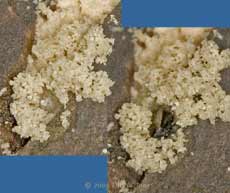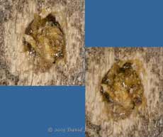 Under another Birch leaf is this small (a couple of millimetres across) object. It resembles the galls I found on several rose leaves. However, I wonder if this one is in fact a spider egg case.