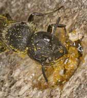 This close-up shows it chewing at the 'resin' which appears to have wood chips embedded in it.