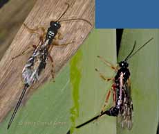 One of the frustrating things about having the camera mounted on a tripod is that (even with a quick release plate in use) you cannot always respond quickly enough to something unexpected. In this case, a large Ichneumon fly that flew about the Stinging Nettles as I waited for the wasp to reappear.