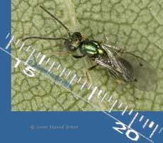 While searching for the Orange Ladybirds I came across another of those curious cocoon structures (see 24 August), and also this tiny insect with an iridescent green body. Measuring just over 3mm in length, I think it may be a gall wasp, although I can't match it with any of the pictures in my insect guides.
