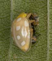 Finally, yesterday I found this newly emerged adult, still holding onto the pupal skin as it waited for its exoskeleton to harden. Today I could see no sign of this, or any other adults.