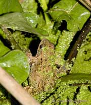 Tonight there is broken cloud and the temperature at 7.30pm is just 2C. Despite this, several frogs are gazing skyward from the duckweed covering of the big pond- this one seemed to have quite a pronounced smile. The water temperature ( about 5cm below the surface) is still 4C.