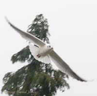 We also had a low flying display from a few of the Black-backed Gulls that appear in the neighbourhood each winter. This was prompted by a neighbour throwing bits of bread onto his shed roof. The gulls are in their winter plumage, which includes the black spot you can see behind this bird's eye.
