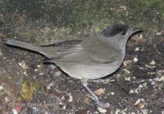 Five days ago I mentioned seeing a Blackcap at the bottom of the garden. This morning I saw it again. This time in the Hawthorn. It returned several times, going down to the ground to feed. I couldn't get a shot of it in the tree. However, this rather messy picture shows the black cap that gives the bird its name as well as indicating that it is a male (the female has a chestnut brown cap). Last year, the female that visited enjoyed eating a Golden Delicious apple that I hung from the Hawthorn. I shall have to get a few tomorrow to replace the less successful Royal Gala variety that I'd already put out this month.