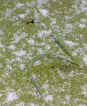 31 December - Well, it looks as though we will end the year with sunshine and rain showers. It's 6C at 8am this morning, and likely to go up a few degrees during the day. Once again we missed out on the snow, only having a few more flurries after the last diary entry. Perhaps the new year will bring us some! We did get two cold days with the temperature staying around freezing, enough to cover both ponds with ice. But that 'cold snap' came to a rapid end yesterday as temperatures got up over 9C, and this morning both ponds are once again ice free. There are no new bird visitors to report. The Blackcap hasn't returned over the last few days, and neither has the Goldfinch. I spent a bit of time out in the garden doing a bit of tidying up, clearing away some of the straggly ends of old plant stems and removing dead Iris leaves from the big pond. I will need to do some more drastic clearing at the shallow end of the pond in the new year, in readiness for the frogs' spawning. The Reedmace seed heads are still intact, although I see that one of them appears to be near to bursting. In the past it has been the middle of January before they started shedding their seeds. As the last day of the year creeps to an end there are no photographs to add to this last entry. I had hoped that the sunset would turn into something worth recording, but despite blue skies and scattered cloud the sun just sank below the horizon with hardly a hint of red to be seen. It's been a very mixed year. The frogs appeared in large numbers and produced large quantities of spawn, and with far less obvious fuss, the newts seemed to produce more eggs than ever before. On the bird front, we were disappointed that neither the Blue or Great Tits chose to use the nestbox. The Blackbirds had their usual problems, building nest after nest. The female even appeared momentarily on the BBC's Spring Watch program after a production team spent a memorable, and very enjoyable day filming in the garden (the only disappointment from that day was that the website didn't get a mention, even though I was shown working on it!). The House Martins did well, with two broods this year, so I await their next visit with great anticipation. We saw a variety of Ladybirds, although the Orange Ladybirds did not have such a good year, with only small numbers on the Birch tree. The invasive Harlequin Ladybirds haven't arrived yet - that is an unwanted species to look out for next year. Another insect I'll be looking for next year is a cuckoo bee that is associated with the solitary bees, Heriades truncorum (Daisy Carpenter Bee), that nest in holes that I have drilled in old timber. Both are 'Red Data Book', with the cuckoo bee being rare. Well, I've reached the point where I need to complete the changes to the diary website ready for the change to 2006. Please let me know if you find any drastic errors as a result of the changes I make........... Click on the images to see larger versions - |