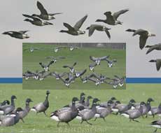 Consequently the geese were disturbed quite often, although usually they would just run to another part of the area. The times when it did take to their wings the flock landed on the sea close to the shore, and was soon heading back onto land.