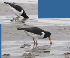 As the tide went out small numbers of Oystercatchers appeared, drilling deep into the sand with their long, bright red beaks in search of worms and molluscs.