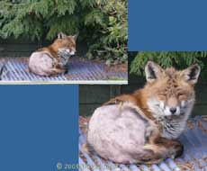 The roof is sheltered, and slopes down to the east, so I assume the fox was trying to warm itself up in the little bit of brightness that made it through the grey morning skies. It looks like an old fox, and the lack of fur on the rear of its body suggests that it may be suffering from mange. It stayed for about 20 minutes. I shall have to watch out for it in the future, and look up information on mange.