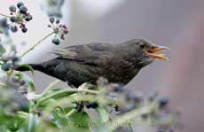 This morning, as I set up a flashgun outside the hide, a Song Thrush carried on eating berries as though I wasn't there, and even stayed put as I walked right underneath it. It returned just once while I was in the hide, but was chased away immediately by a male Blackbird.