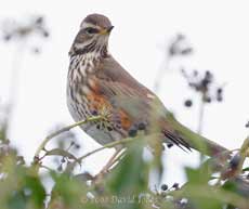 The Redwings came and went, but on the other side of the Ivy tree - with the exception of one opportunity as this individual perched atop the Ivy before going down to feed. Not a perfect image, but a lot better than yesterday's - well worth the wait!