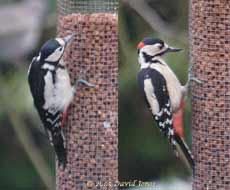 23 February - Temperatures overnight stayed just low enough for the snow to be still here in the morning, and the ponds were frozen over. However, by this afternoon all traces of ice and snow had gone again, and we have only seen a few flakes falling during the day so far. The forecast is for all that to change overnight, with, perhaps a few inches of snow tomorrow. Other than topping up the feeders, I have not done anything outside today, and have been feeling extremely tired. Nevertheless, there have been a few exiting moments to report. For a short time this morning there were at least ten Redwings here, and it looked as though they were part of a larger flock that I could see perched in the Chestnut further down our road. We had four Goldfinches here, and the Thrush was down under the Hawthorn, feeding on raisins that I put out. The female Great Spotted Woodpecker made another appearance, but by the time I got upstairs with my camera she had gone.
