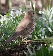 This visit by a Song Thrush took place while I was doing some tidying up on the veranda. It wasn't at all worried by my presence, or my getting the camera to take this shot as it perched by the Snowdrops (which are now well past their prime). Tonight the garden is once again covered with a thin dusting of snow. Click on images to see larger versions |