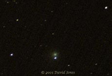 Horace took advantage of its new freedom last night and was spotted investigating under the caravan at around 10pm, but the thermometer reading of 10.7C this morning indicated that it returned to the hedgehog house after its wanderings. Tonight it appeared at 9.10pm and spent about five minutes at the food dish before heading out again. I've set up a cctv camera to monitor the feeding area and I will be recording through part of the night in an effort to find out when/if it returns. With a clear sky the temperature is likely to drop to near freezing, so perhaps it won't stay out too long. It is a pleasant change to have a clear night sky, and I spent some time down the West Wing looking upwards. These days it is very difficult to see the Milky Way but despite that, many stars were visible. While Nasa's Deep Impact mission to crash a projectile into the Comet Tempel 1 was launched successfully today, I turned my camera towards another comet, Comet Machholz.