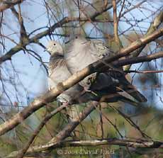 This pair of Collared Doves was happy to spend ages perched together in my neighbour's Birch tree, preening and enjoying the sunshine. I caught a glimpse of a Goldcrest for the first time for ages. It was flitting about in amongst the tangle of branches that make up the Ivy tree.