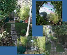 Perhaps because it was a cold night, but last night's video (3am to 7.05am) showed that while we had already seen Horace leaving its house at 9.10pm, it must have returned at some time as it left again at 3.10am. It returned again at 6.10am. No wildlife pictures today but I did take advantage of the morning brightness to get some pictures of the West Wing. I have yet to get around to sorting out the very out of date 'The Garden' section of the website so I'll include a few of the images - The left hand image shows the path that passes the Ivy tree and goes up the short slope to the patio area. The bottom right image shows the path, looking back towards the house. The fence panel at the end is covered by Solanum crispum (Chilean Potato Vine) plants which the Bumble Bees love in the summer. In the middle of these there is a large round convex mirror which gives an interesting view back down the garden.