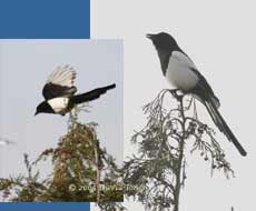 The Magpies are quite active at the moment and several times I saw one perch at the top of one of the conifers and give its raucous call. Each time, I waited to grab an image as it flew off, but nearly every time it simple dropped out of sight behind the trees. The left hand image shows the one time I was able to capture that moment.