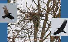 21 January - A bright, sunny start, but the blue sky was gradually hidden by cloud as the day progressed, and it was damp by the late afternoon. During the morning I spend a bit of time out on our deck waiting for opportunities to use the new camera to capture birds in flight, in particular, the Rooks that have become quite vocal. Unfortunately, while I could hear them they didn't fly over us. While I waited, I took a photograph of the old nest to record it while the tree is still bare. I have seen a bird at the nest a couple of times in the last week and the two pictures of them in flight were taken a few days ago and are from too great a distance to have much detail.