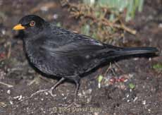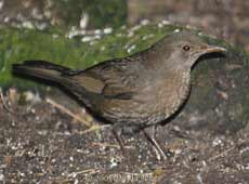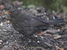 As I write this at 10 am, the blackbird pictured above as feeding under the Hawthorn. Earlier, I captured this image of the female member of the trio down in the same spot. Notice the lighter plumage and the dull coloured beak.