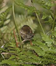 However, I was ready with my camera this time, as it hunted by the small pond. As it searched through the fronds of a fern (which was about 26ft from me) I at last had an opportunity, but made the mistake of pressing the shutter too soon. As soon as I took this picture of its rear it turned to face me. I took a second picture, but the flash hadn't recharged so all I got was darkness!!! There is now a new set of batteries in the flashgun.