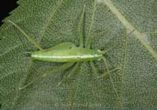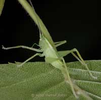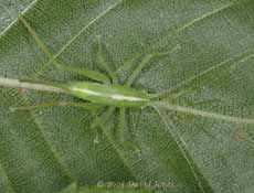The night before last, I had seen three Orange Ladybirds, but the highlight of that session was the appearance on the tree of two crickets (which I haven't seen since). There were on the same branch, just a few leaves apart. These are infrequent visitors to the garden, and I think they are possibly immature Oak Bush Crickets, and this one is a male.