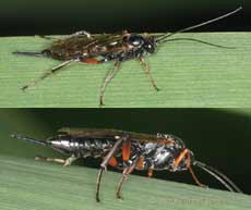 First is this sawfly(?) that appeared on an Iris leaf, staying just long enough to capture these two images. Its body was about 14-15mm in length.