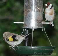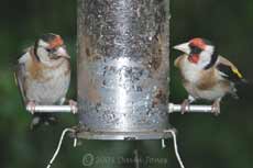 Finally, back on the 16 May we saw the first Goldfinch fledglings of the year. In this picture the bird on the left could well be one of those birds, now developing the Goldfinch's characteristic head plumage.