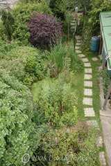 9 July - After a cloudy start, the afternoon brought sunshine and a promise of even better tomorrow. There have been no further signs of the Blackbirds trying to nest. The male was still taking mealworms away yesterday, but he is now more interested in pecking at the apples I've thrown down under the hawthorn. Having confirmed that the nest is now abandoned, I decided yesterday afternoon to put up my scaffolding tower ready to clip the top of the Hawthorn, and I got the job done this morning, although I still need to get into my neighbour's garden to finish the job. There's no picture of my up the tower, but I did take the opportunity to get a few pictures of the garden from a different angle.