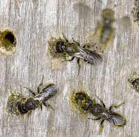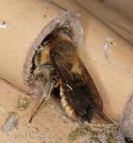 This picture shows one of the first bees to complete this task. You can see the light-coloured material that it is using to do the sealing.