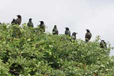 The local Starling flock obviously approved of the Hawthorn's new top. When I walked down the garden this evening they were lined up right over the top of it, enjoying the sunshine. Unfortunately, by the time I got my camera from the house some of them had headed up to the rooftops, but this picture still gives an idea what I saw.
