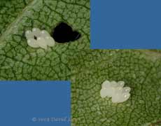 I continue to monitor the Birch tree, and five days ago I spotted the first eggs that have been laid by the Orange Ladybirds. Since taking these photographs I've found one more group. All three groups are on leaves that are on low branches on the eastern side of the tree.