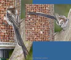 Just one bird photograph to include this time. Over the last two days a single Long-tailed Tit has appeared several times at the tall peanut feeder, usually with a Blue Tit. Today I managed to grab a couple of images, including these that show why this little bird has got its name.