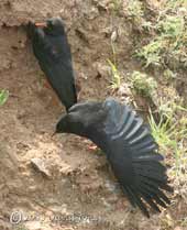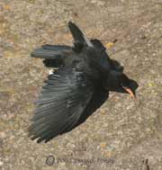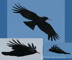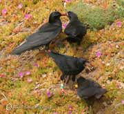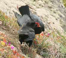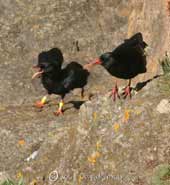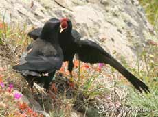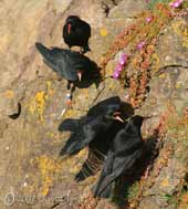 The feeding of the Choughs is a far more frenetic affair. Here, a chick spreads its wings and lowers its body as it begs for food,