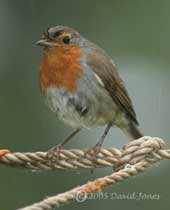 5 June - A thoroughly wet day with only a brief trip out for a meal late in the afternoon. Despite the weather, it wasn't a 'lost' day. For a start, as I walked back to the caravan from the shower block at around 8am, I disturbed a Buzzard that had landed on the field - unfortunately it didn't return while I had my camera at the ready. I decided to make use of the caravan as a hide for a while, and the following photographs are a result - I haven't mentioned it yet, but when we arrived here, we hadn't even unhitched the caravan before a Robin was perching on the rear of the Discovery. It visiting us frequently, spending more time than ever around us today, ready to take away bits of bread thrown out for it. Here it's perching on our washing line as rain falls around it.
