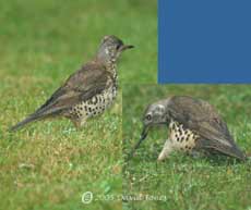 Like the Blackbird, this Thrush hunted for worms, although it seemed to prefer larger individuals. It was amusing to watch as it hopped about, stopping suddenly to 'listen'(?) before pouncing on a worm and having a tug-of-war as it pulled it out of its burrow.
