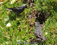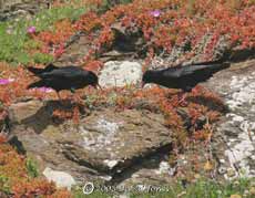 On the other hand, the parents continue to head off together to forage for food. Here they are searching the insects amongst the Purple Dewplants (more about them later) that grow on the rocky slopes of the Lizard.