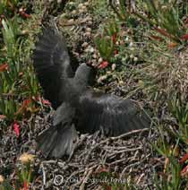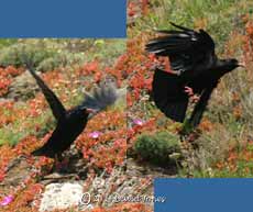 This Jackdaw sunning itself amongst the Hottentot Figs had me looking twice until I saw that the read 'beak' was actually a part of a plant in front of its open, black beak.