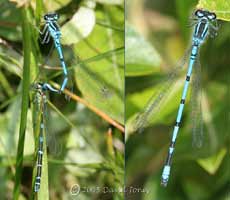 In the afternoon we headed back to the eastern side of the Lizard, along a road that crosses Goonhilly Down. We stopped briefly at a pond by the side of the road. When we checked it out two days ago it was very quiet, but today it was literally teeming with Damselflies - I believe the species is the Azure Damselfly (Coenagrion puella). The bright blue males were like flying jewels in the sunshine while the darker females were far less noticeable.