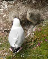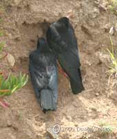When the parents go off to forage the youngsters are left 'parked' along the cliffs, some times in groups or singly. This pair spent quite a while quietly pecking at the soil.