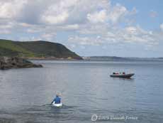 30 May - The weather is quite pleasant, although an annoying bank of cloud was stuck over us for some of the time today. Yesterday we made our first visit of the holiday to Lizard Point. It' always great to sit outside the Polpeor Cafe and have a 'cream tea' when the sun shines, looking out to sea towards the West, and watching the gulls and other birds at very close range as they fly over the cliffs. The Choughs are still feeding their chicks on their nest in a cave close by, and fledging isn't due until the 6th or 7th June. Hopefully we'll see them before we go home. On our way back to the caravan we stopped for a few minutes in a new car park that serves the nearby Goonhilly National Nature Reserve and listened to the first Cookoo that we have heard for at least a couple of years. We couldn't see it amongst the bushes, but it must have been very close to us. Today we spent the day in Porthallow Cove, our regular haunt and I took advantage of a calm sea to go out on my sit-on-top kayak.