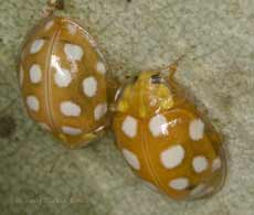The Orange Ladybirds certainly didn't glow! They continue to be active on the tree, and I counted twelve in the short time I was by the tree. They are usually solitary, and just after I took this picture, this pair had gone their own ways.