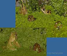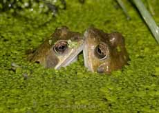 The cloudy start to the day meant that the temperature got up to over 10C in the daytime, and at 8pm it has just dipped below 8C. In the ponds there are only a few frogs in sight, and this pair presented the best pose, although I couldn't get really close to them.